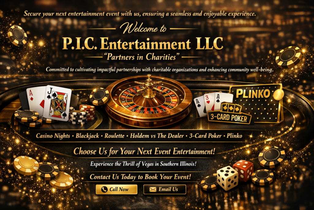 We invite you to elevate your next event by booking our exceptional casino tables. Experience the thrill of a casino atmosphere tailored to your occasion throughout Southern Illinois!